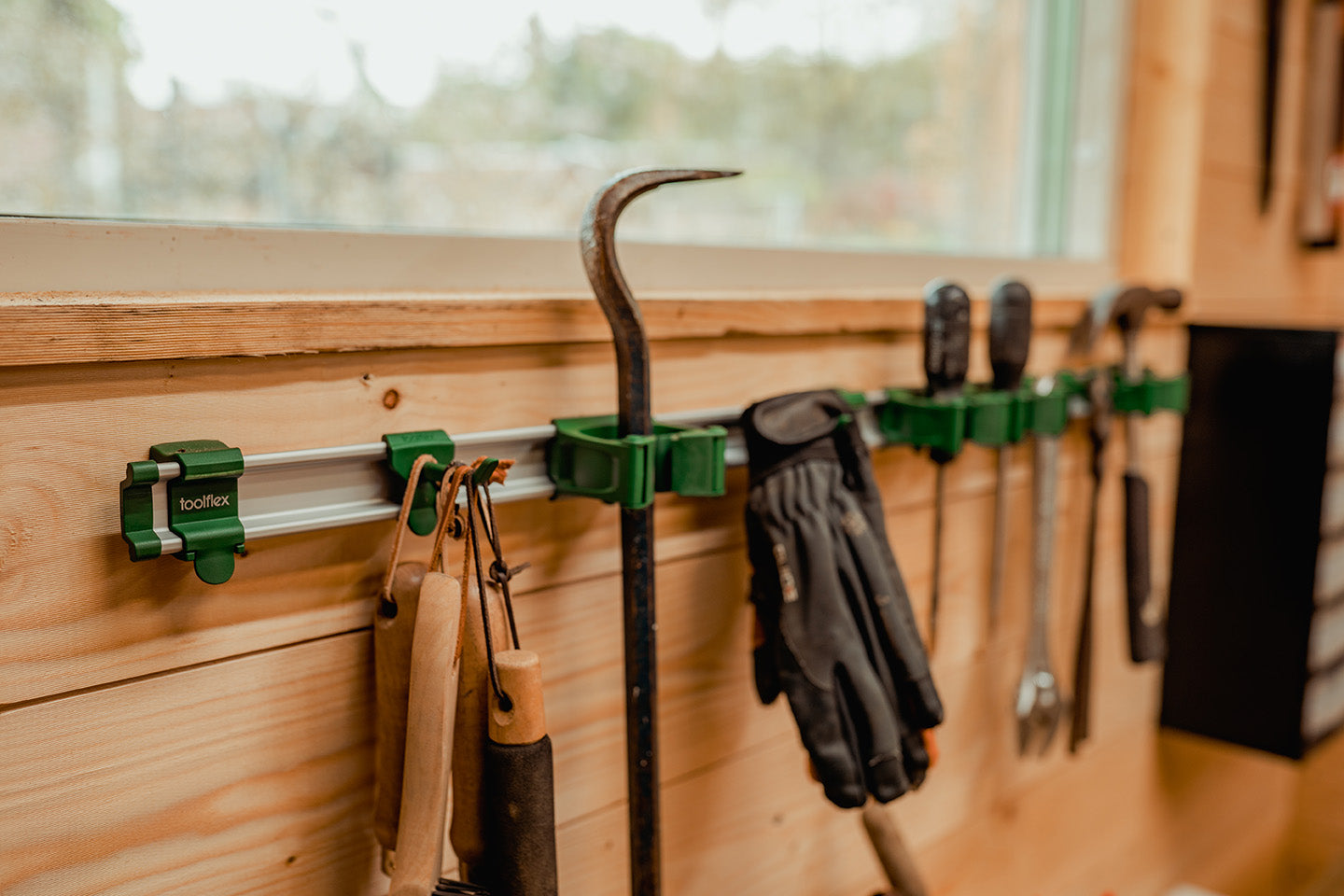 • Almacene, organice, acceda rápidamente a trapeadores y escobas, rastrillos y palas, artículos de ferretería, artículos deportivos y otros artículos con formas únicas