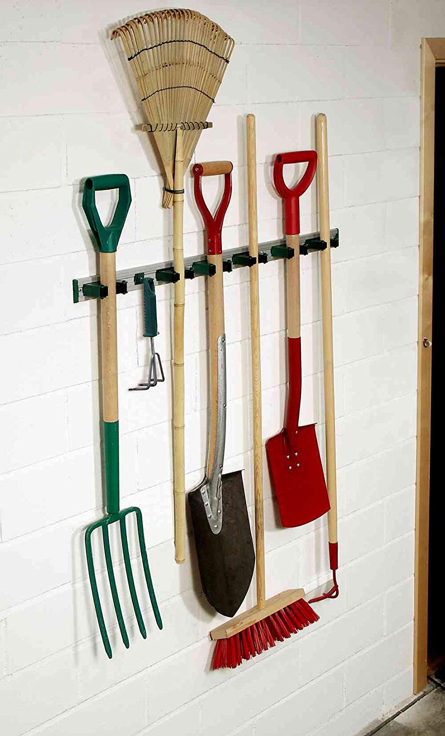 - MULTI-PURPOSE - Wall-mounted tool holder system to store and organize mops and brooms, rakes and shovels, hardware, sports gear and other unique items.