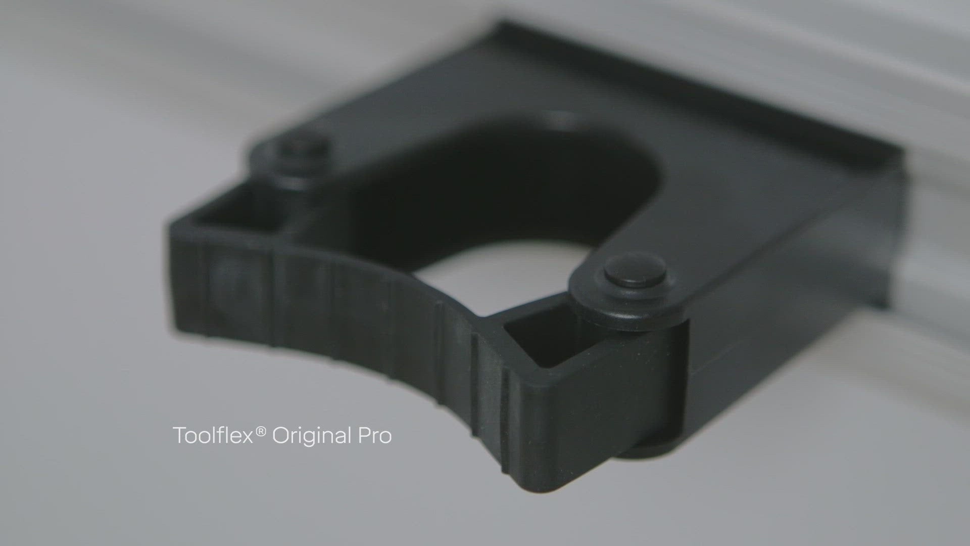 - Se visse directement au mur à l'aide du matériel inclus ou se glisse facilement dans le système de rails Toolflex Original 20 ou 36, vendu séparément