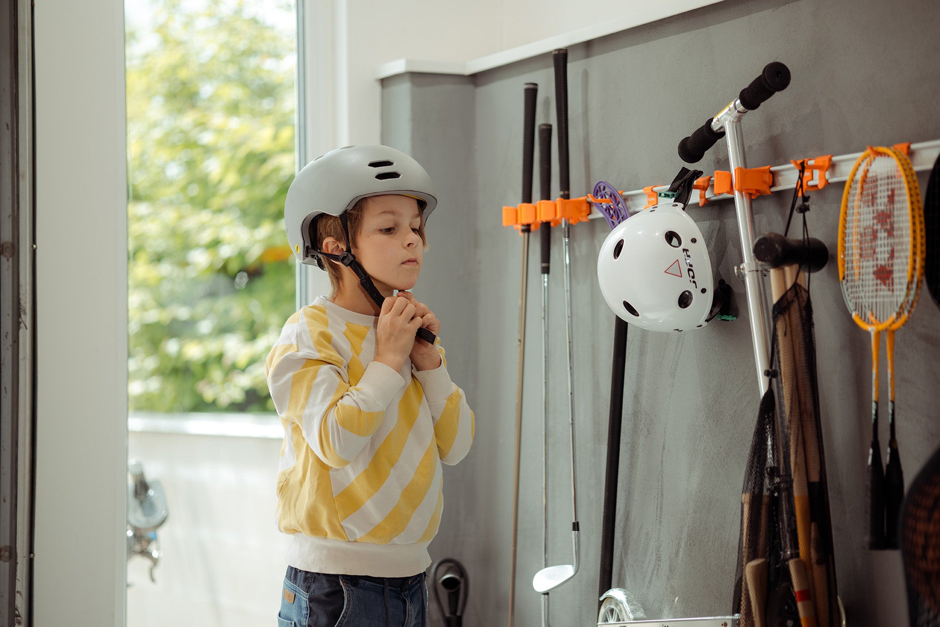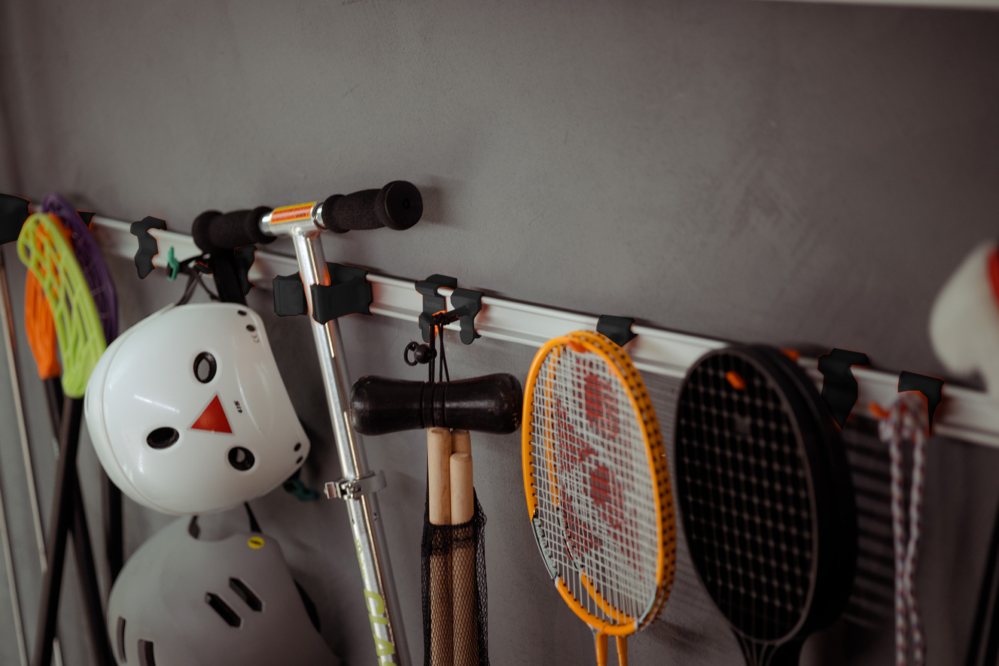 - The ideal sports equipment organizer for use as a baseball bat holder, hockey stick holder, tennis racket holder, pickleball racket holder, ping pong paddle holder, cue stick holder, ski pole holder, kayak and canoe paddle holder, bike helmet holder, skateboard helmet holder, swimming pool pole holder, helmet holder or other unique sports gear